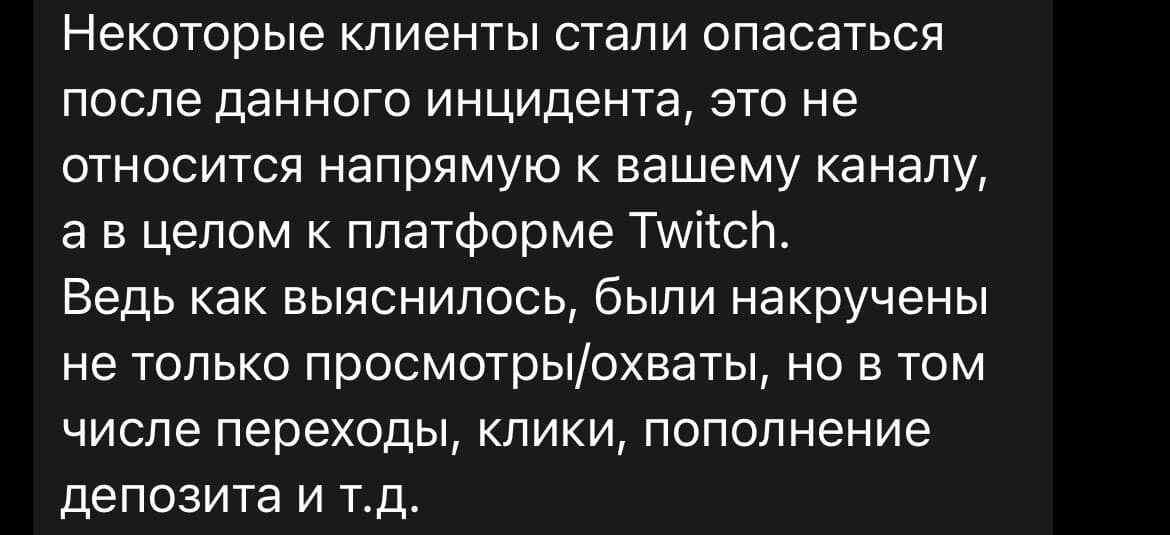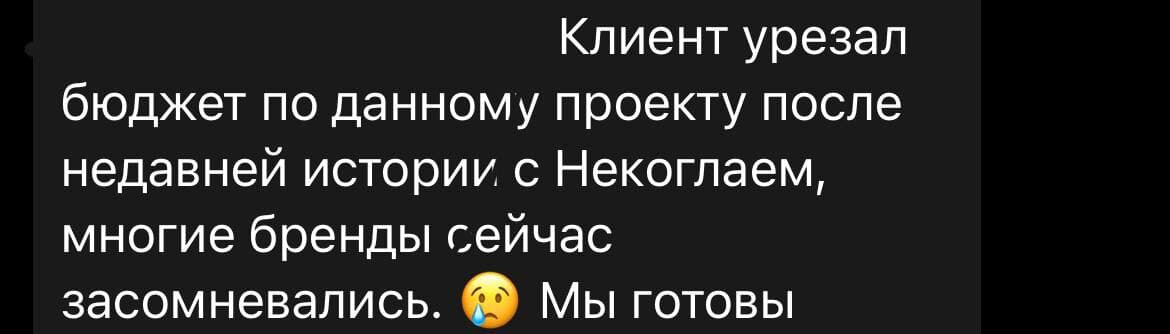 Об этом сообщил стример Константин «ZakvielChannel» Грейтан. Он выложил скриншот переписки с одним из рекламодателей из которого следует, что после расследования про накрутки Некоглая, у компаний понизился уровень доверия к платформе.