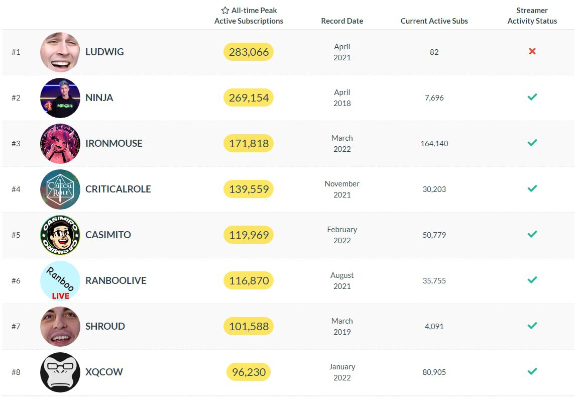 На момент написания новости стримерша занимает первое место на Твиче по количеству платных подписчиков – на втором месте находится Феликс «xQc» Ленгьел, у которого более 80 тысяч подписчиков. За все время существования Твича этот результат – третий.