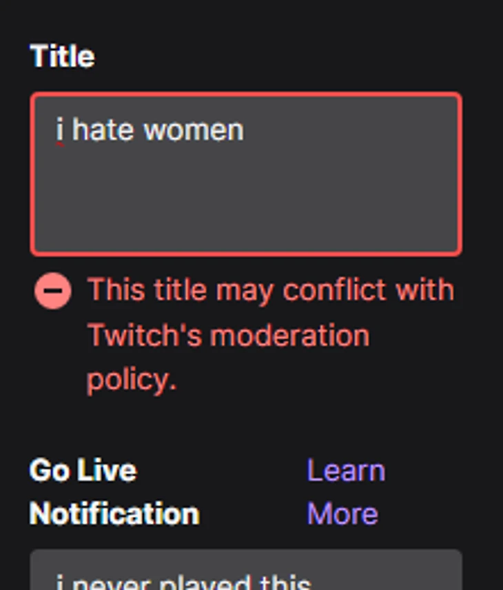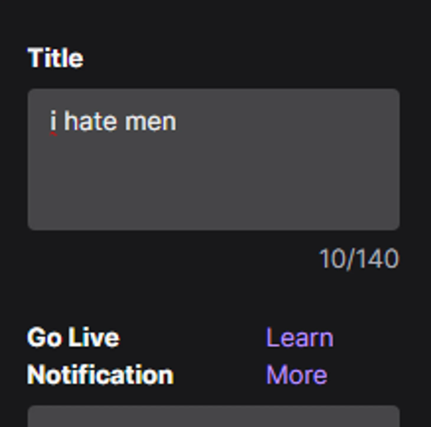 Twitch запретил заголовок трансляции «Я ненавижу женщин» и разрешил «Я ненавижу мужчин».