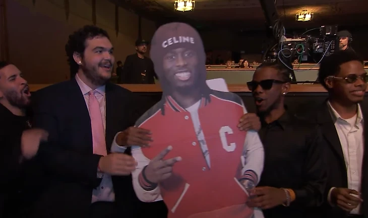 Kai Cenat не присутствовал на церемонии. Вместо него на сцену вынесли картонку с его изображением: