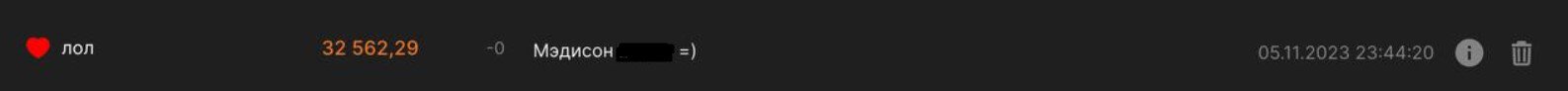 Этот же скриншот ранее опубликовала Карина Шпак в своем телеграм-канале. Возможно, Мэддисон иронизирует над донатером, отправившим деньги стримерше. На сегодняшнем стриме Maddyson собирал донаты на возврат денег Карине Шпак.