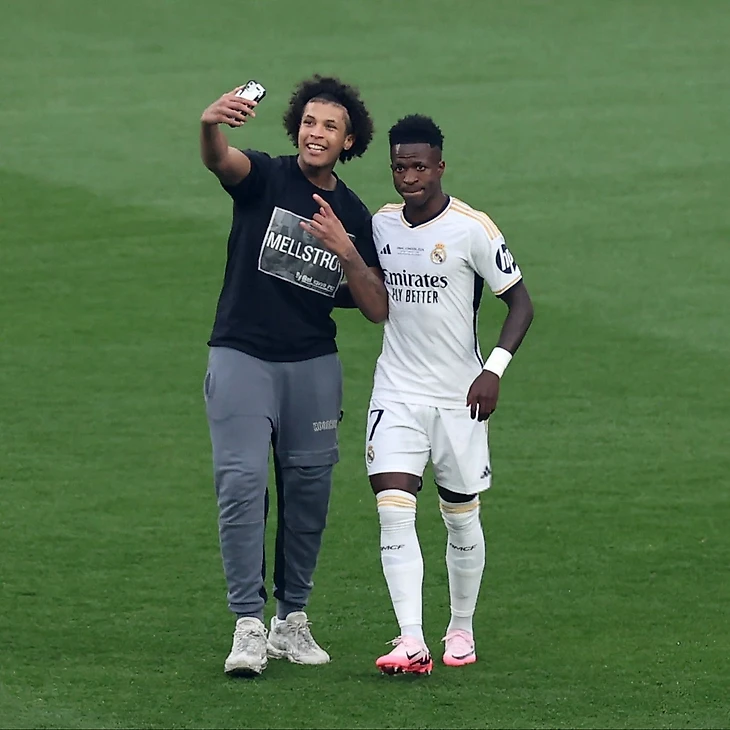 На 30-й секунде матч между «Реалом» и «Боруссией» был прерван из-за болельщиков, выбежавших на поле. Один из них пробежался в футболке с надписью «Mellstroy».