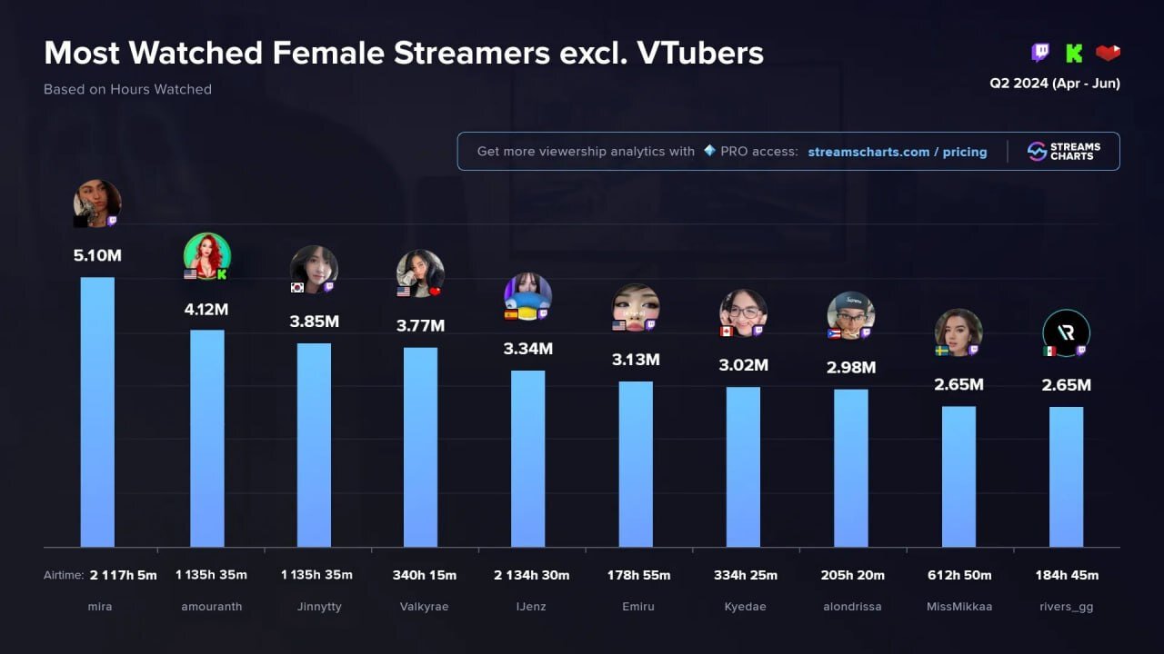Mira стала самой популярной стримершей на Twitch во втором квартале 2024 года.