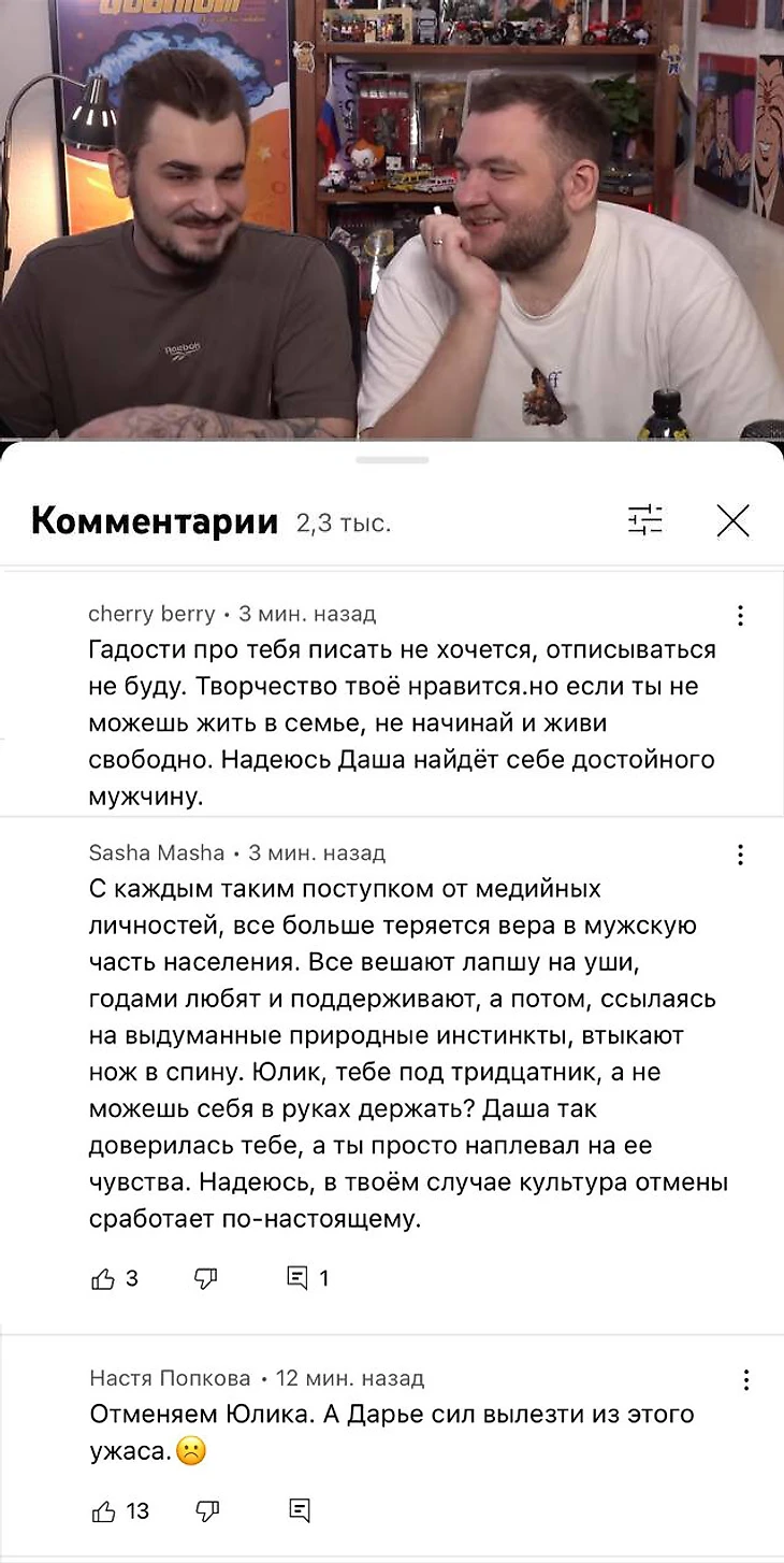 Под видео Юлика тоже моментально набралось сотни гневных комментариев, общий смысл которых: «Отменяем Юлика. Такого от тебя не ожидали».