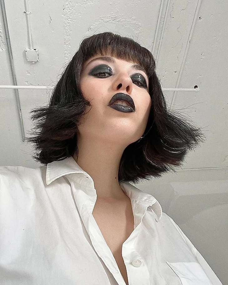 Это обложка на красном фоне девушки на черном чёлке, с чеке попадает текст «Springfield - Wisconsin».