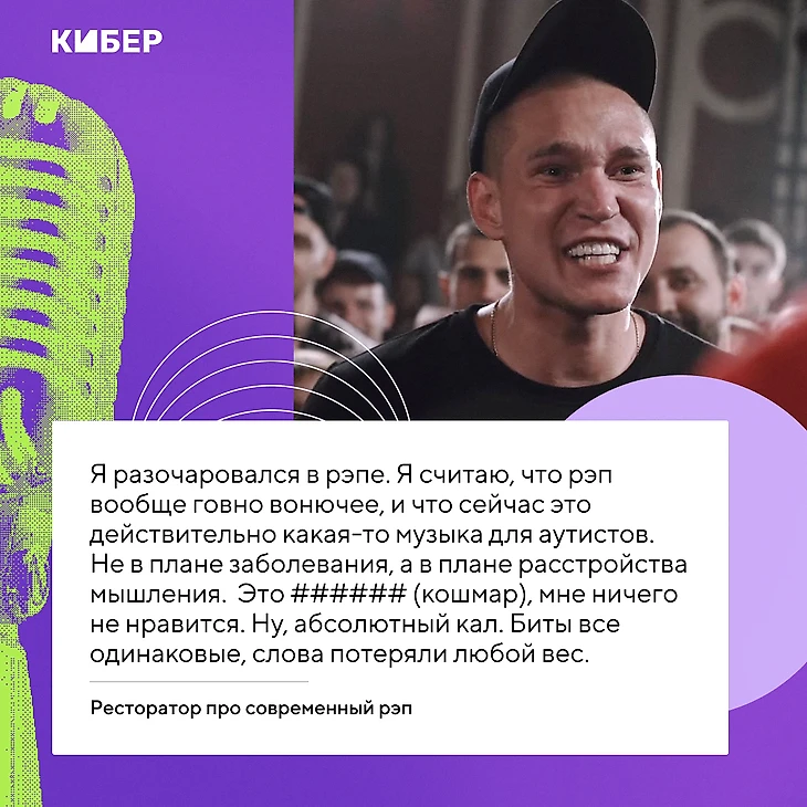 Это ###### (кошмар), мне ничего не нравится. Ну, абсолютный кал. Биты все одинаковые, слова потеряли любой вес. Слов нет больше в рэпе. Все говно. ##### (ничего) не нравится. Отвратительно».