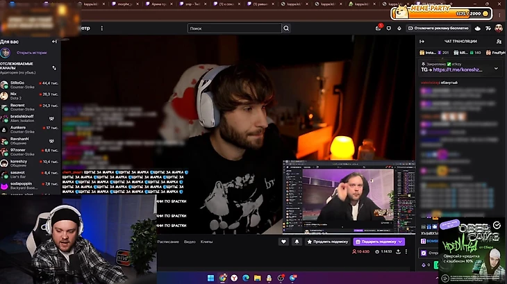 Я вышел со стрима в тот момент, когда он начал: «Ой, ты что, хочешь мне ##### [лицо] набить? Ой, мне кажется, мне собираются ##### [лицо] набить». Никто ничего не собирается бить, агрессия – это полная ##### [ерунда]. Я хочу поговорить с ним в реальной жизни. Если есть какая-то проблема, он сейчас будет скипать и говорить: «##### [Зачем] оно мне?», значит, чел сливается. Я просто предлагаю сесть и пообщаться, потому что есть что обсудить».