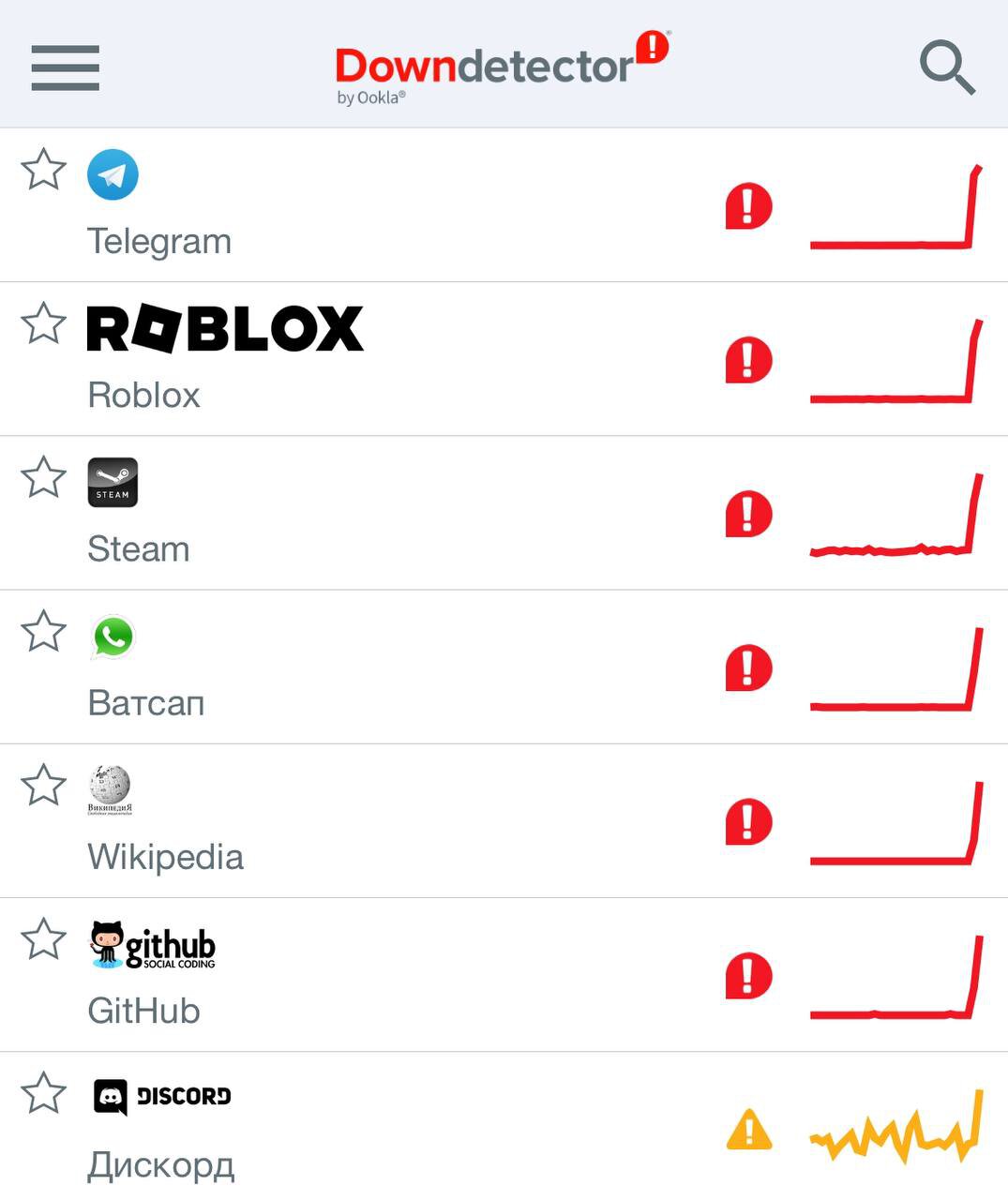 В России наблюдаются сбои в работе Telegram, WhatsApp, Discord, Steam и Twitch.