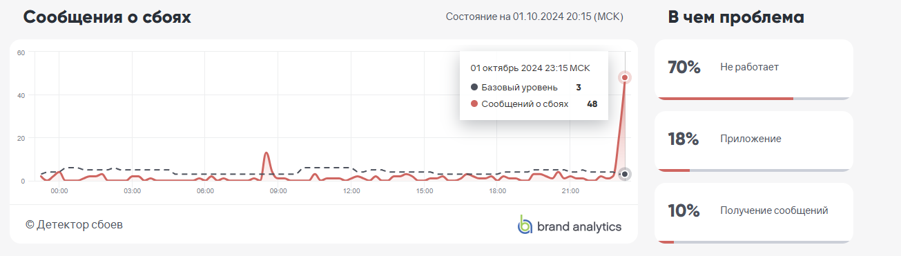 [Оригинальная новость] Вечером 1 октября пользователи телеграм обратили внимание на сбои в приложении.