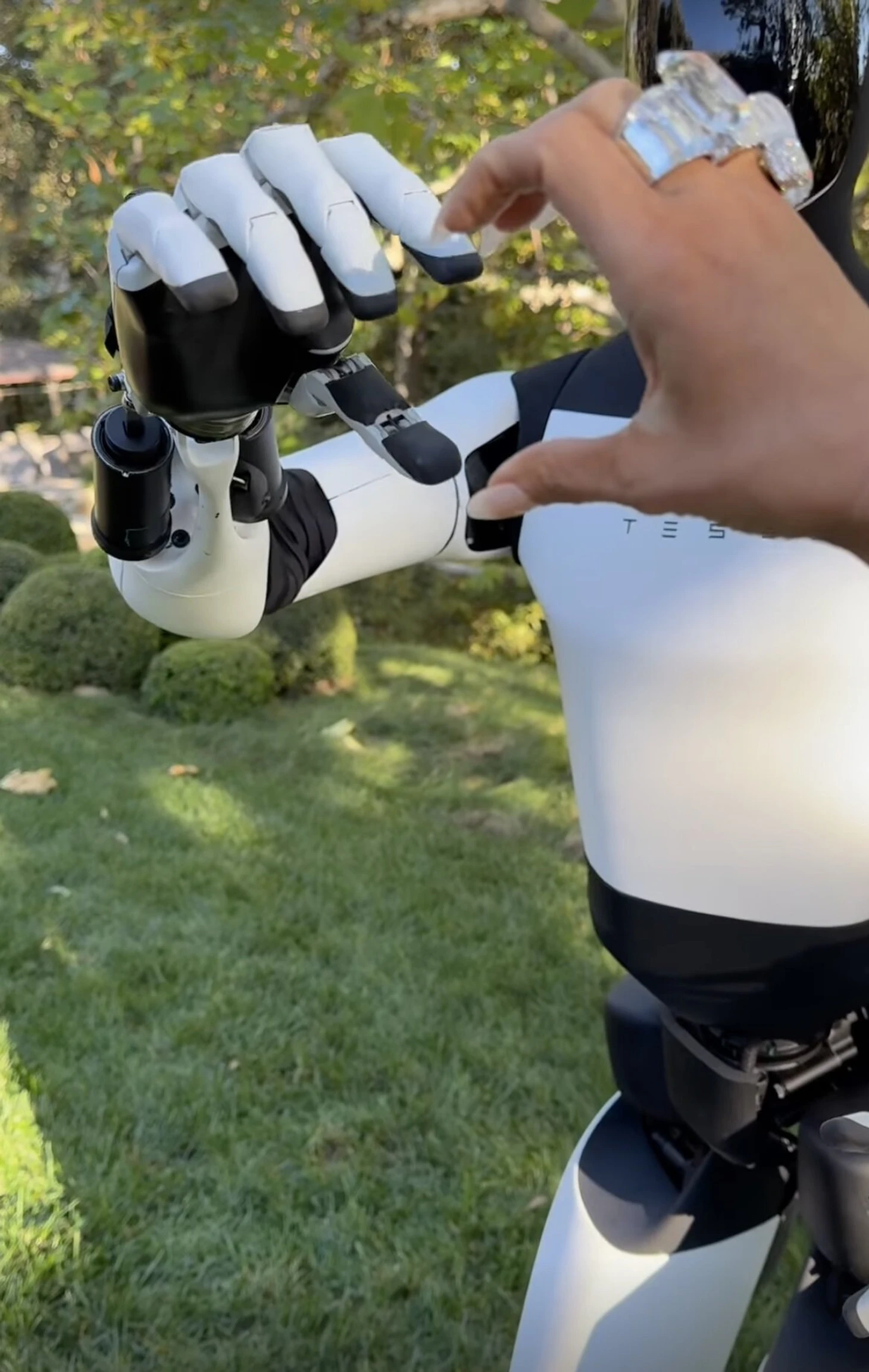 Кардашьян спросила у робота, может ли он признаться ей в любви. В ответ робот протянул ей руку и согнул пальцы в форме сердечка. После этого бизнесвумен обыграла его в игру «Камень, ножницы, бумага».