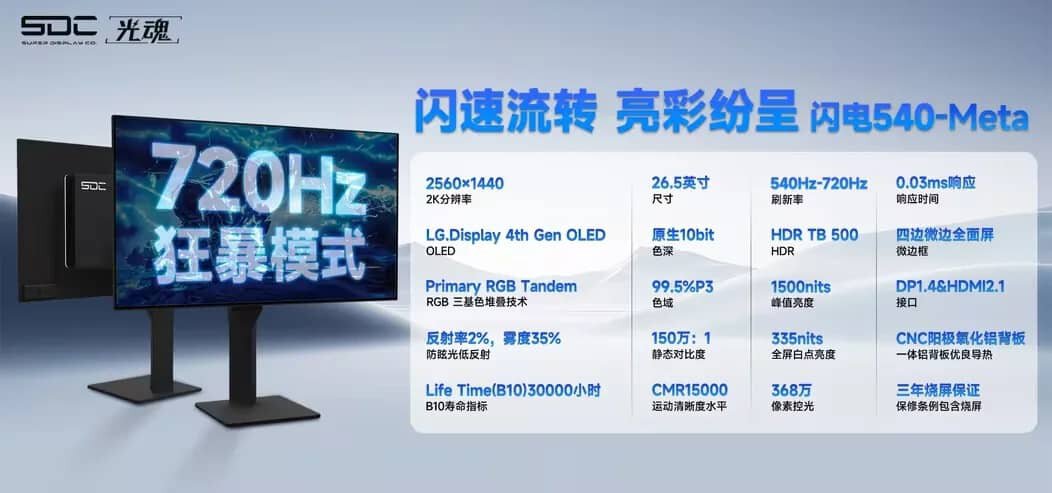 Китайская SDC представила первый в мире OLED-монитор с поддержкой 720 Гц