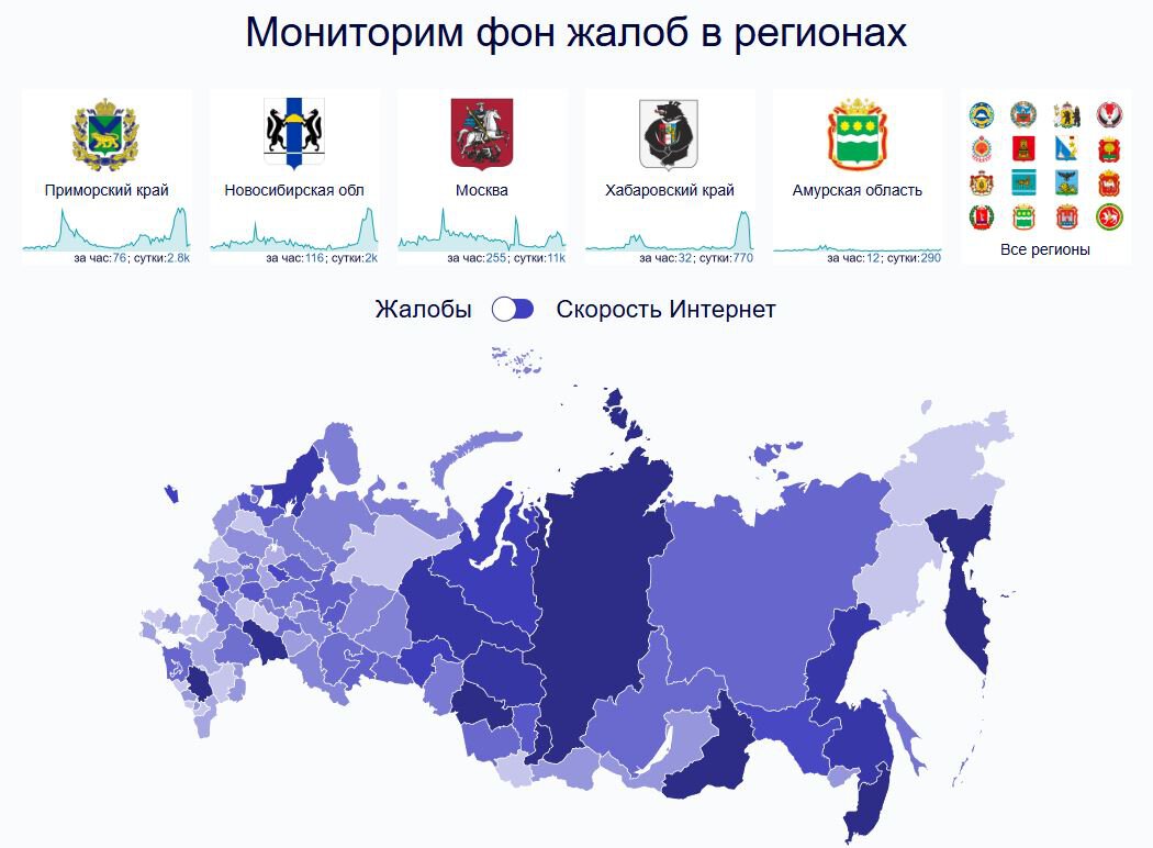 По областям на проблемы в основном жалуются жители Москвы, Новосибирской области и Приморского края. Данные взяты с сайта «Сбой.рф». Downdetector.su также подтверждает увеличившееся количество жалоб на сбои и проблемы в Санкт-Петербурге.