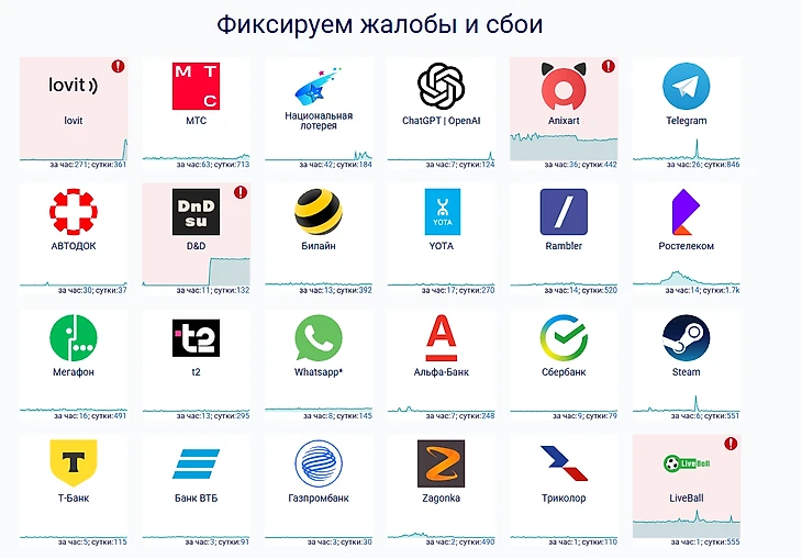 Россияне дальше сталкиваются с ошибкой интернета или сбоем некоторых интернет-сервисов. По состоянию на утро, 1 сентября, больше всего жалоб поступает от абонентов МТС, «Билайн» и Yota. Также проблемы испытывают абоненты провайдер Lovit.