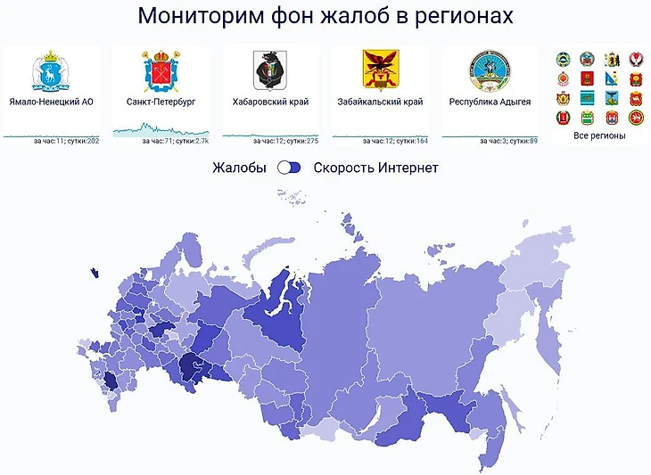 По областям на проблемы в основном жалуются жители Санкт-Петербурга, Хабаровского края и Забайкальского края. Данные взяты с сайта «Сбой.рф». Downdetector.su также подтверждает увеличившееся количество жалоб на сбои и проблемы в Ямало-Ненецком автономном округе.
