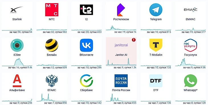 Среди сервисов и приложений утром, 15 сентября, массовые сбои наблюдаются в работе Telegram и Janitor AI.
