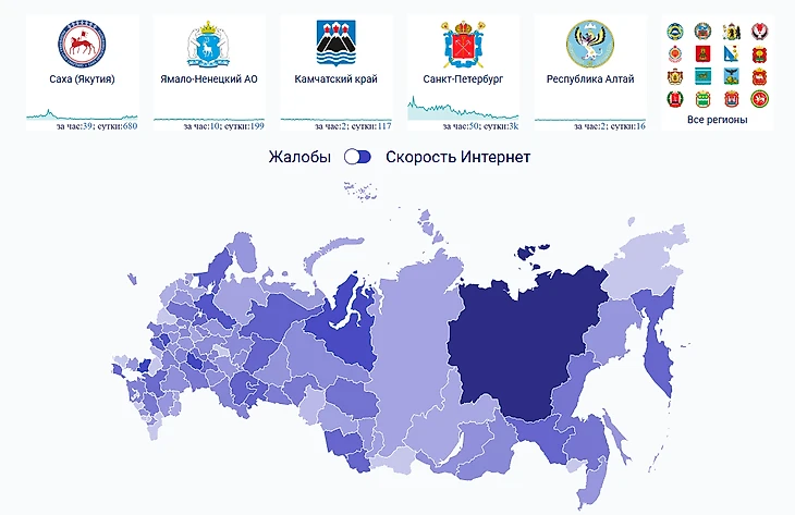 Республика Саха (Якутия) (50 жалоб за последний час);