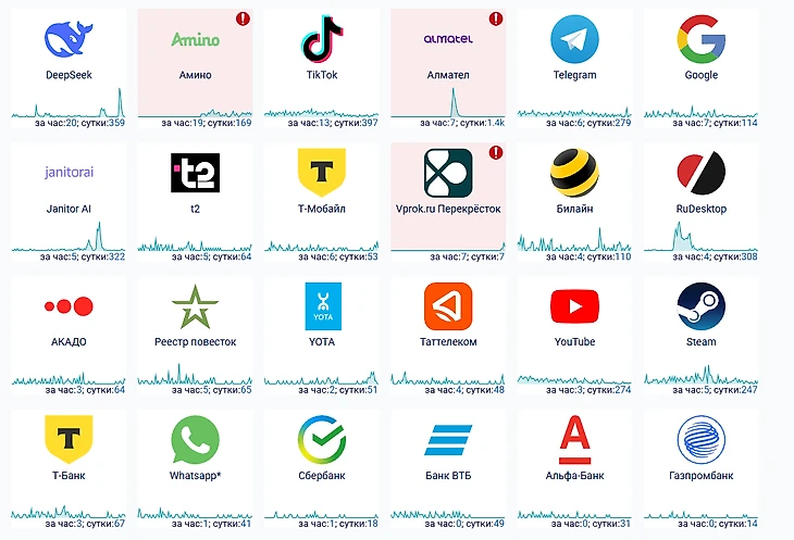 Среди сервисов и приложений утром, 17 октября, массовые сбои наблюдаются в работе DeepSeek и «Амино».
