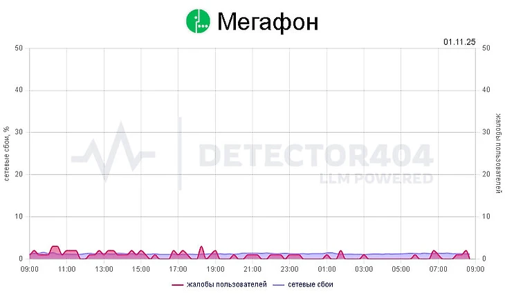 Сбой интернета Мегафон сегодня, 1 ноября