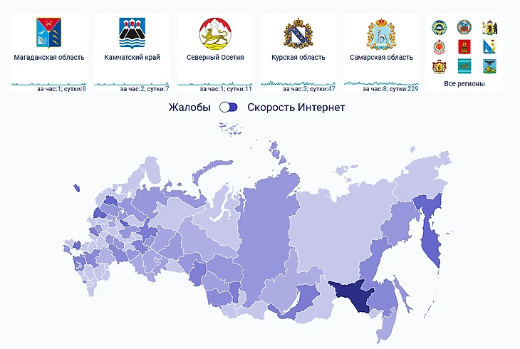По областям на проблемы в основном жалуются жители Новосибирской области, Амурской области и Санкт-Петербурга. Данные взяты с сайта «Сбой.рф». Downdetector.su также подтверждает увеличившееся количество жалоб на сбои и проблемы в Новгородской области и Камчатском крае.
