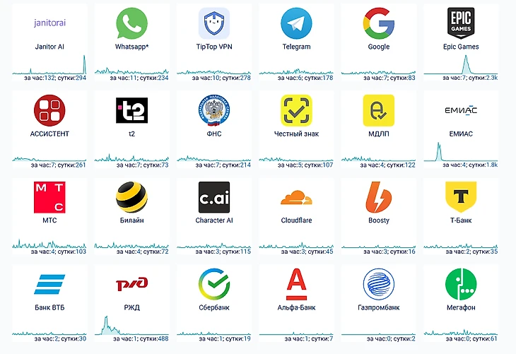 Среди сервисов и приложений утром, 27 ноября, массовые сбои наблюдаются в работе Janitor AI и Telegram.