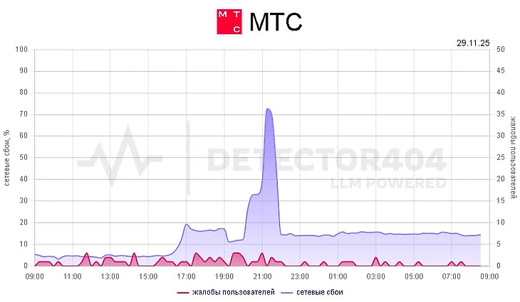 Сбой интернета МТС сегодня, 29 ноября