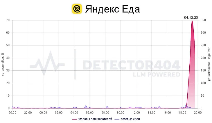 Вечером 4 декабря в работе «Яндекс Еды» случился массовый сбой. Пользователи жалуются на проблемы с авторизацией, дублирование заказов и повторное списание оплаты.