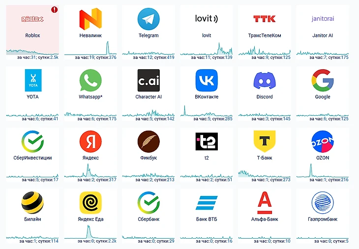 Среди сервисов и приложений утром, 5 декабря, массовые сбои наблюдаются в работе Roblox и Telegram.