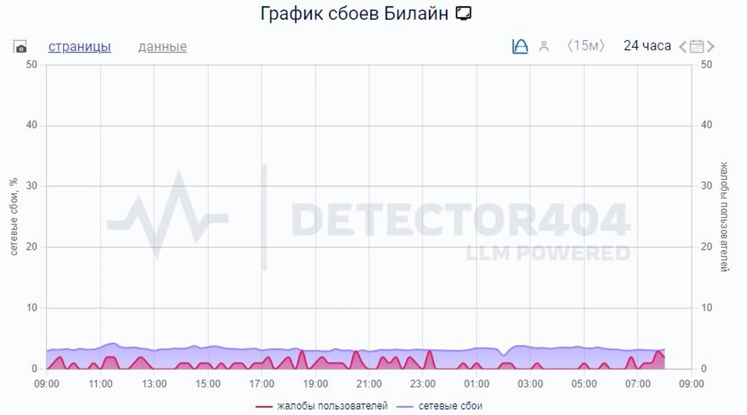 По данным сайтов «Сбой.рф» и Downdetector.su, о проблемах в работе Билайна сообщают жители следующих областей: