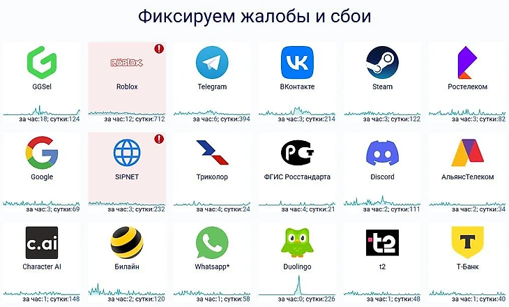 Среди сервисов и приложений утром, 7 декабря, массовые сбои наблюдаются в работе Roblox и Telegram.