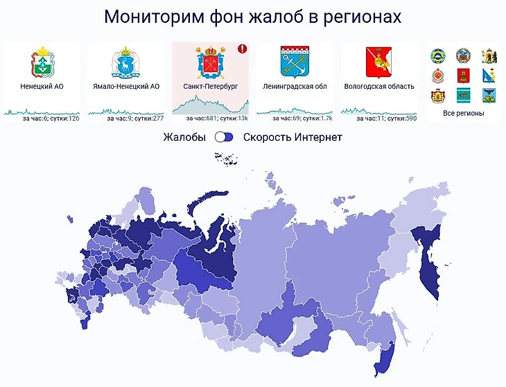 Санкт-Петербург (496 жалоб за последние 3 часа)