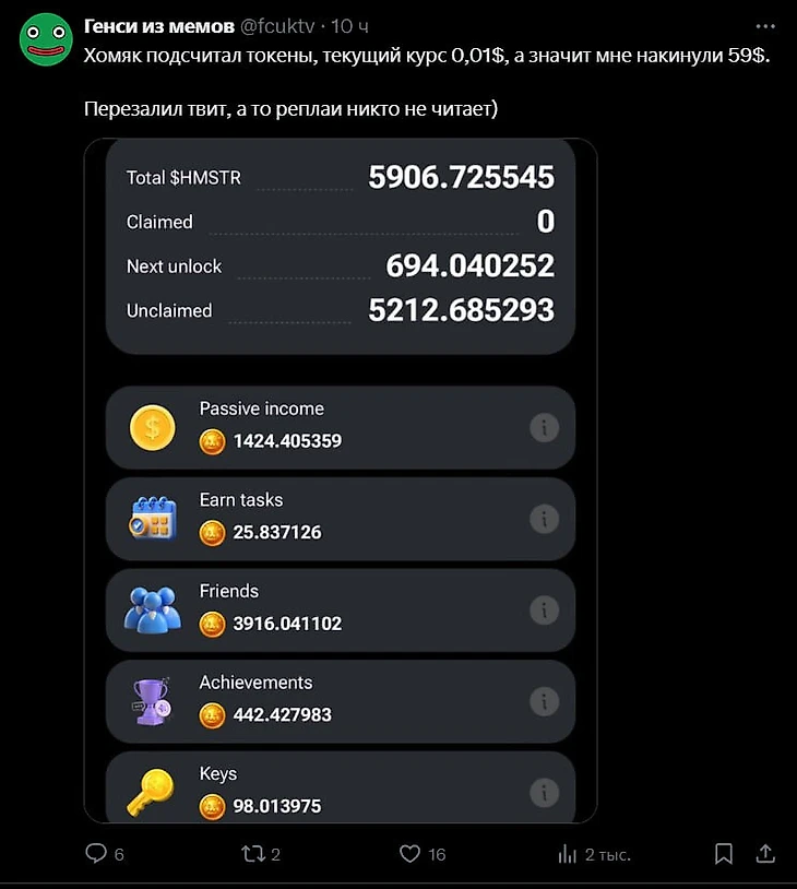 Хомякоины раздали! Тапальщики в бешенстве – получат в лучшем случае 2000 рублей