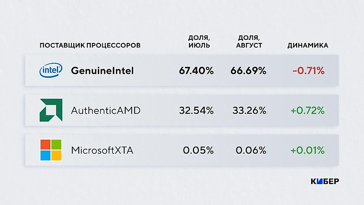 Большинство геймеров по-прежнему предпочитают Intel, а процессорами AMD пользуются лишь треть пользователей. Вполне возможно, что в ближайшем будущем ситуация еще сильнее сдвинется в пользу красных – компания готовит весьма сильные CPU по очень привлекательной цене, пока у Intel проблемы. Но об этом мы подробнее расскажем ниже.