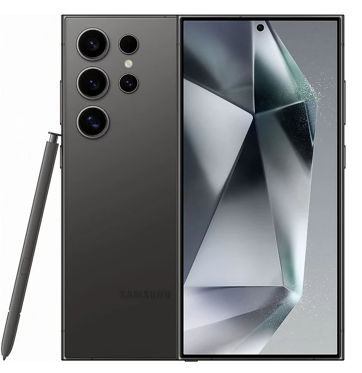 Samsung Galaxy S24 Ultra — главная флагманская модель 2024 года с максимальным количеством функций, мощным железом и топовой фронтальной камерой. Корпус сделан из титана, что придает телефону премиальный вид.