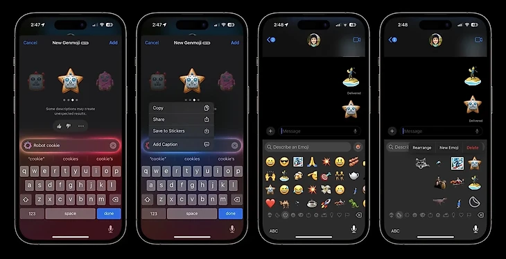 Функции работают по принципу генеративного ИИ – по текстовому запросу нейросеть генерирует эмодзи (Genmoji) и изображение (Image Playground).