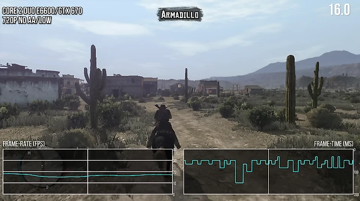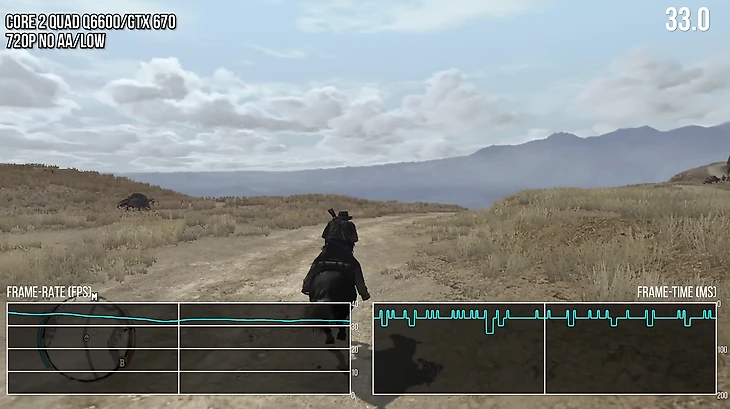 Батталия запустил Red Dead Redemption на системе, которая была бы актуальна в год выхода оригинальной игры. Связки Core 2 Duo/Quad и GTX 670 показали схожие результаты с поколением Xbox 360 и PS3. Но на консоли Microsoft все же была самая стабильная версия того времени.