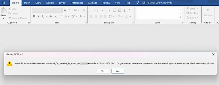 Такой метод работы почтовых сервисов и стал ключевой механикой у мошенников. Дело в том, что Word без проблем восстановит битый файл. Когда он восстановлен и стал читаемым, система защиты электронной почты уже не сканирует его.