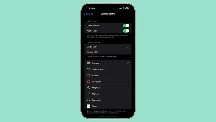 Блокировка фокуса при помощи Camera Control. Функция блокирует фокус и экспозицию при легком нажатии кнопки Camera Control. Включается в «Настройки» → «Камера» → Camera Control.