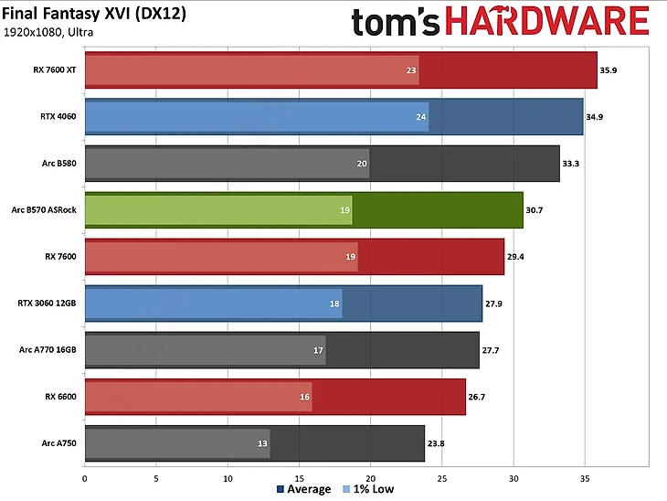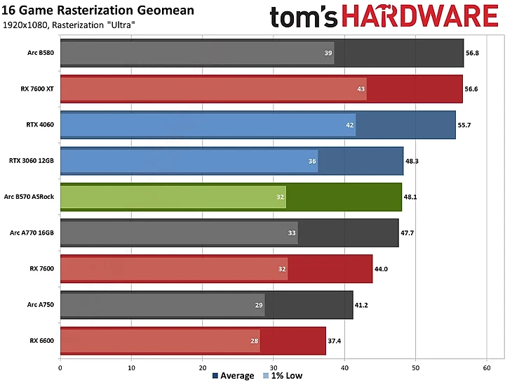 При этом новинка уверенно обходит более дорогую Radeon RX 7600 и не дотягивает до RTX 4060. По сравнению со своим старшим братом Arc B580, Arc B570 работает примерно на 18% медленнее.