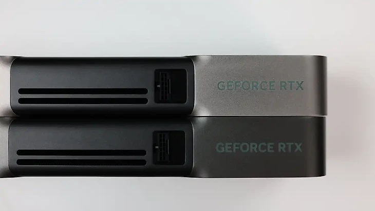 Размеры референсных карточек RTX 5080 (сверху) и RTX 5090 полностью идентичны.