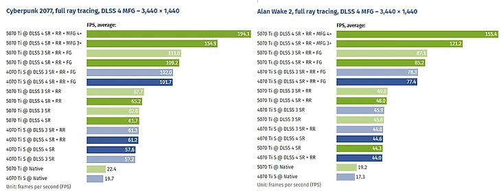 Одной из ключевых фич видеокарты GeForce RTX 5070 Ti, как и всей серии GeForce RTX 50, является поддержка мультикадрового генератора в рамках апскейлера DLSS 4.