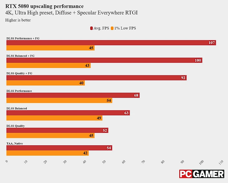 Авторы издания PC Gamer протестировали игру в том числе на мощном железе – с процессором Ryzen 7 9800X3D и видеокартой RTX 5080. Результаты печальные: подобная система осилила лишь 120 FPS при низких настройках графики в нативном разрешении 1080p. Добиться большей производительности можно лишь с использованием апскейлеров.