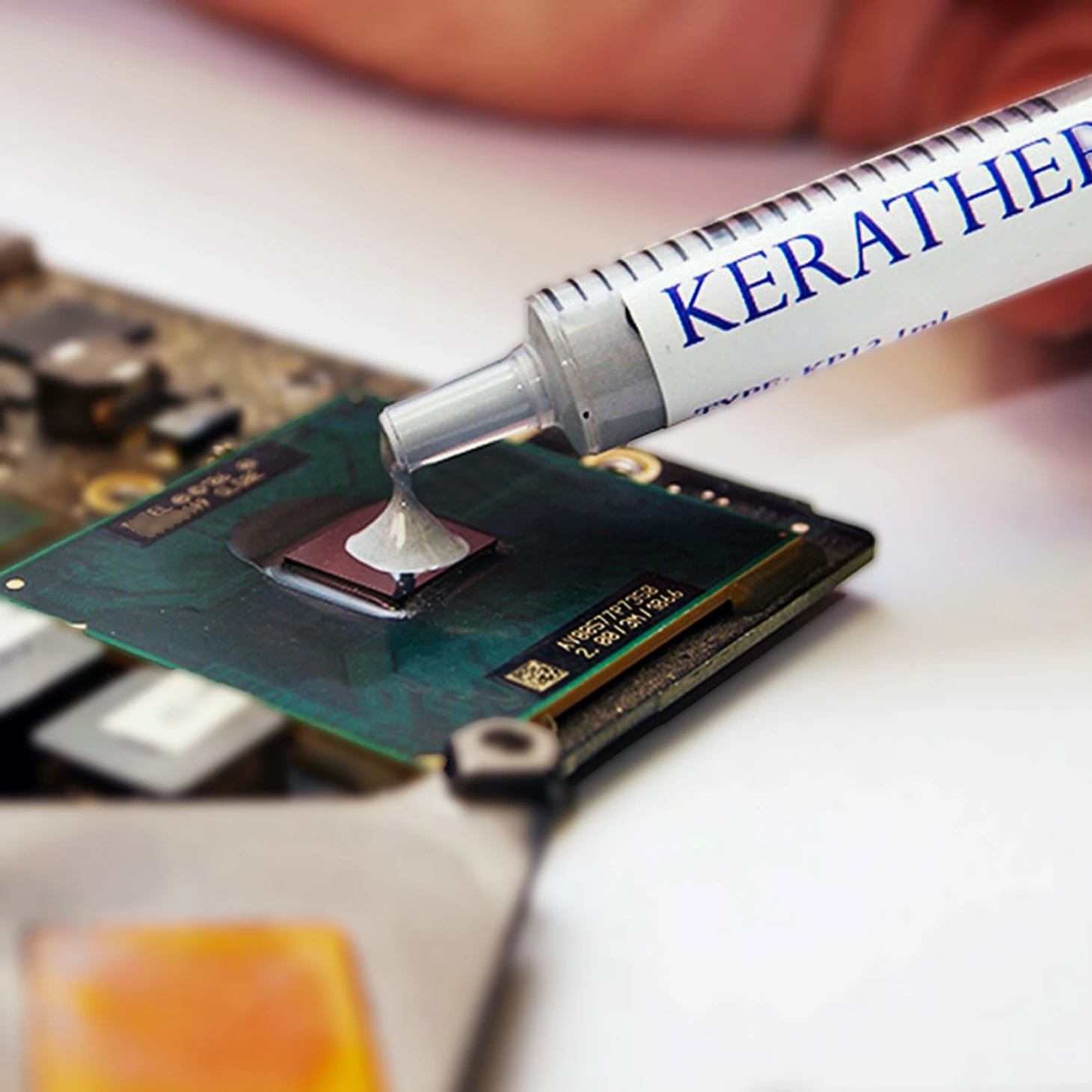Специальный состав, который используется для улучшения передачи тепла между поверхностью чипа и системой охлаждения. Выглядит она как густая субстанция серого или белого цвета. В ней содержатся теплопроводящие частицы, такие как оксид цинка, алюминий или даже серебро в более дорогих вариантах.