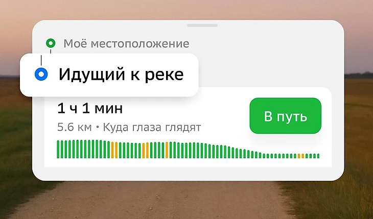 В 2ГИС представили новый режим: «Идущий к реке». У маршрута нет конечной точки. Он подстраивается не под скорость, а под состояние: с ним не надо куда-то торопиться, можно остановиться у пруда и послушать пение птиц.
