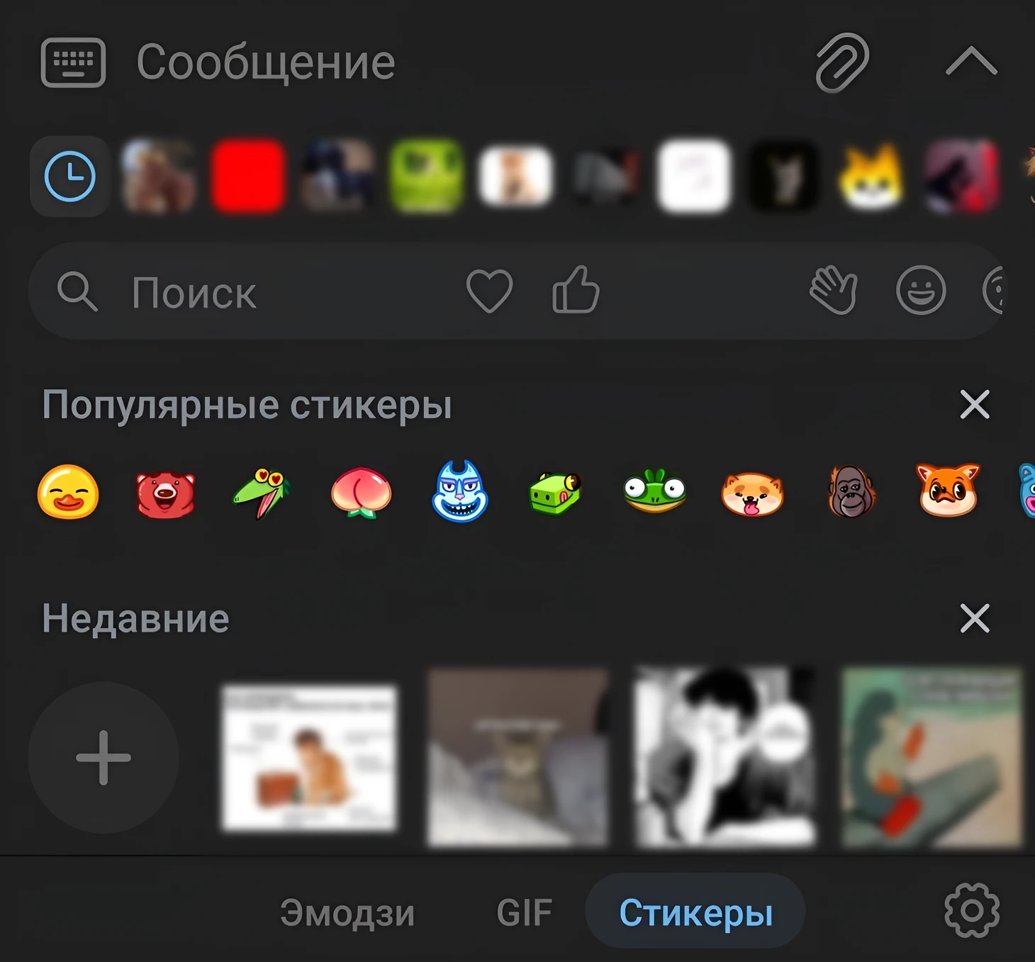 Первыми в списке появятся стикеры из ваших текущих наборов, подходящие под запрос.