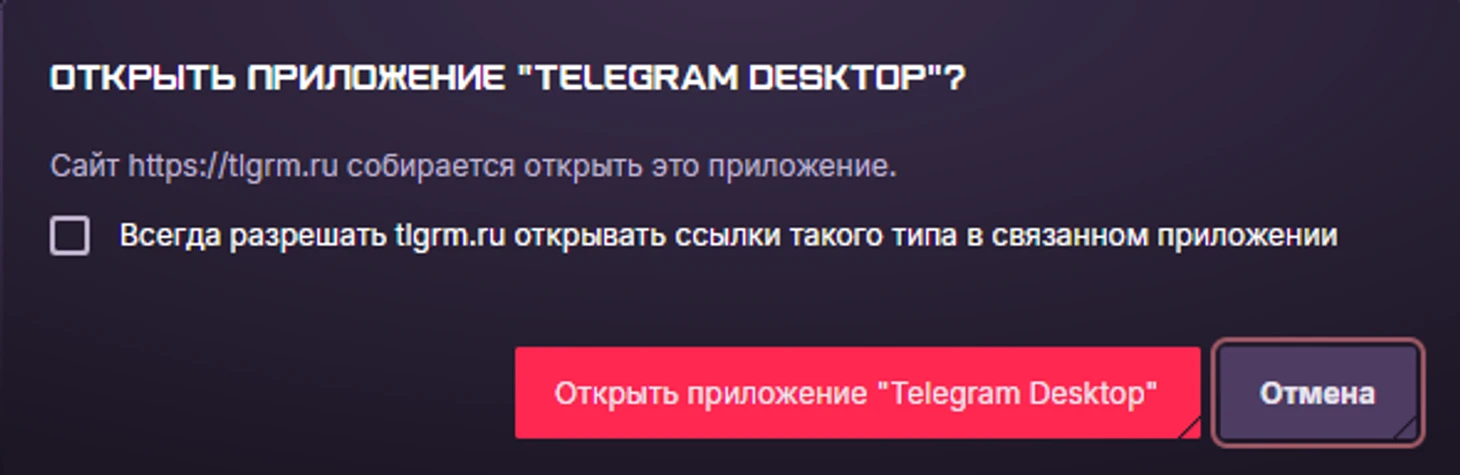 Нажмите «Открыть» в появившемся запросе браузера (он перенаправит в приложение).