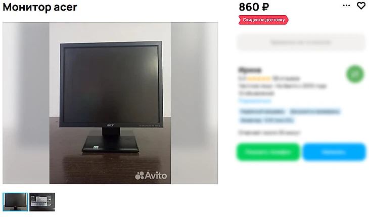 Старые квадратные экраны с соотношением сторон 4:3 можно найти даже за 500 рублей. Они пойдут как временное решение – посидеть с таким до зарплаты или стипендии, а после выставить на продажу по той же цене. На постоянную оставлять не стоит – они годятся для Discord или чтения чатов, но для фильмов или игр не подойдут: черные полосы и низкое разрешение испортят впечатление.
