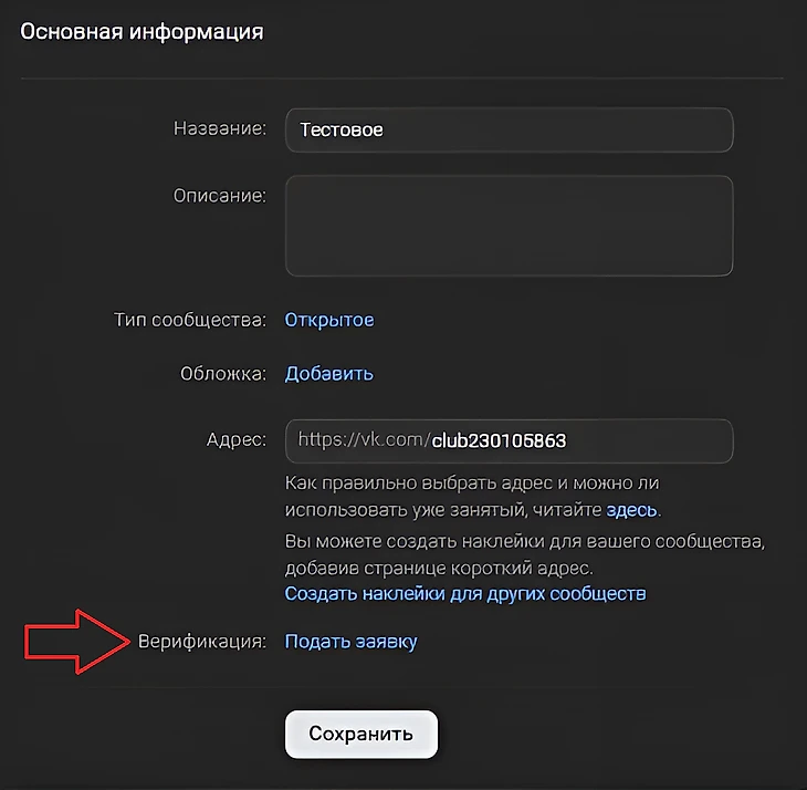 Как получить галочку для группы VK