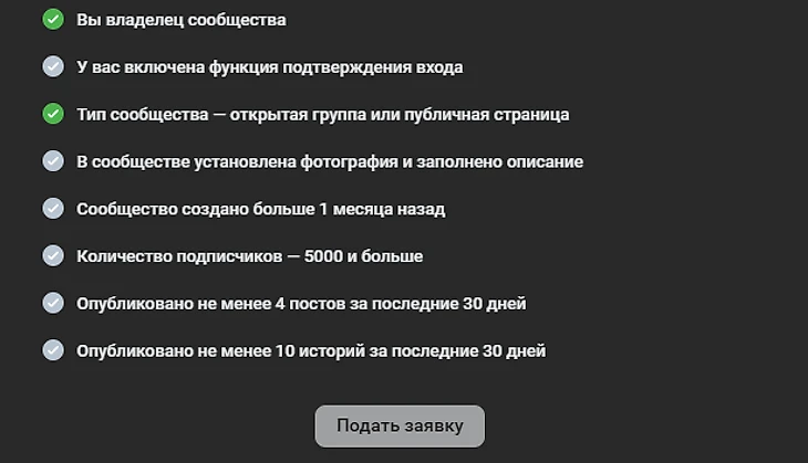 Для прохождения верификации необходимо соответствовать этим условиям:
