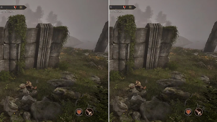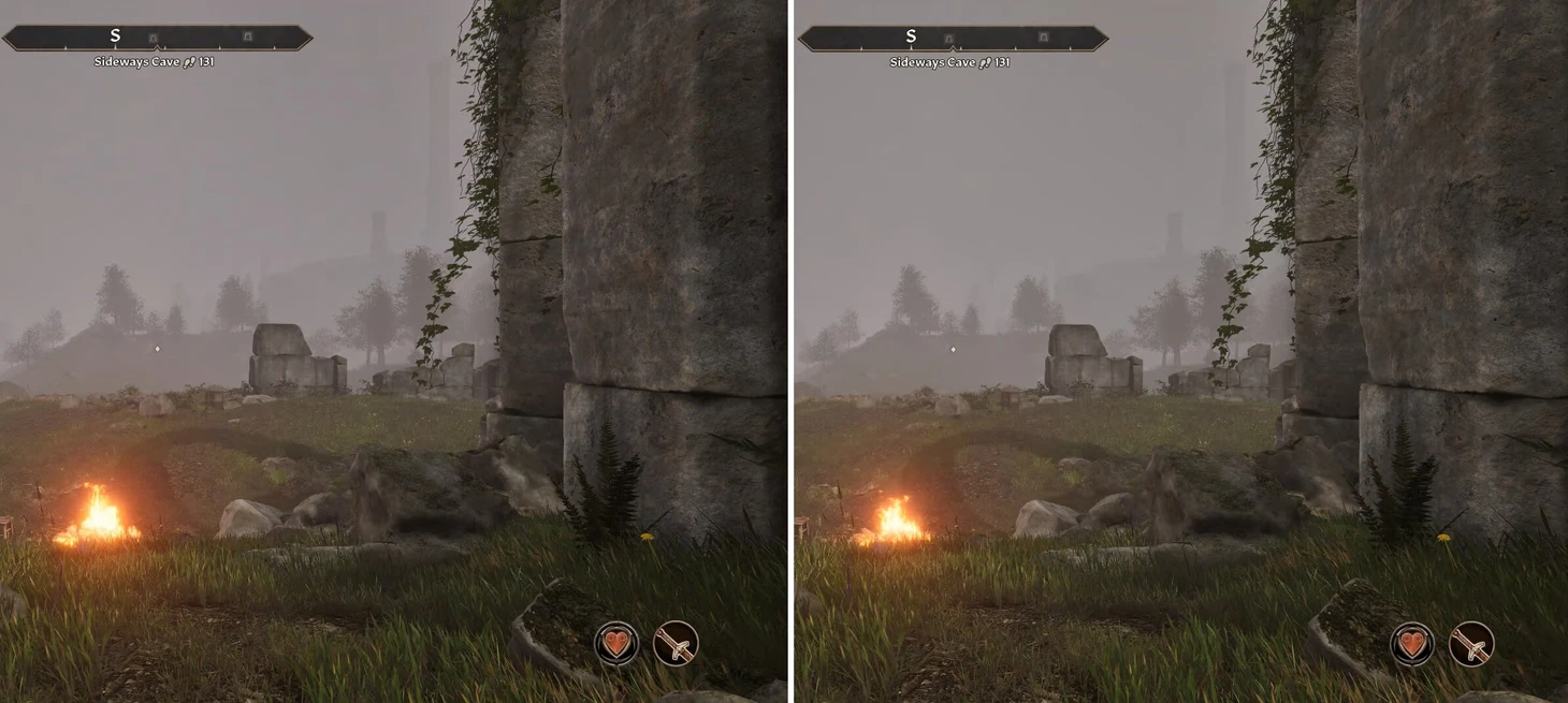 Однако здесь на помощь владельцам GeForce RTX 20 и RTX 30 приходит альтернативный апскейлер FSR. При его использовании можно включать генерацию кадров AMD на устаревших графических адаптерах Nvidia, что также дополнительно повысит производительность Oblivion. К примеру, на нашей системе с RTX 3070 Ti в городе игра демонстрировала в среднем 75 FPS с DLSS в сбалансированном режиме. При переключении апскейлера на FSR + генератор кадров производительность игры заметно повысилась до стабильных 115 FPS с минимальными визуальными отличиями. Пожалуй, это наилучший выбор для старых видеокарт.