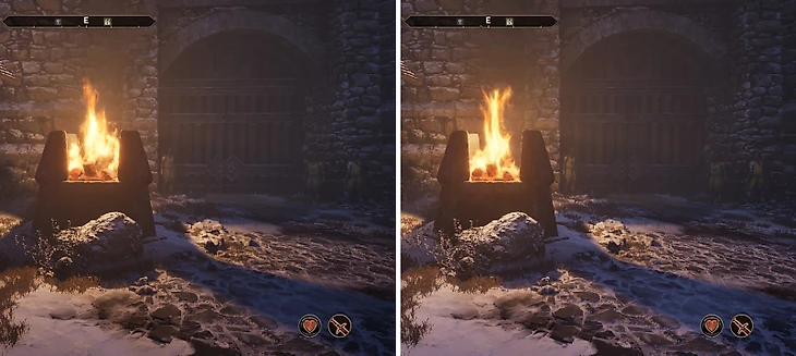 Разница между низким (слева) и высоким (справа) качеством отражается в первую очередь на таких эффектах как огонь.